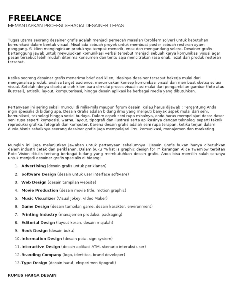 Secara umum, arti freelance adalah suatu cara kerja di mana sebuah pekerjaan dilakukan oleh arti freelance: Kerja freelance adalah jenis pekerjaan yang membuatmu merasa bebas karena kamu tidak perlu terikat oleh waktu dan peraturan yang ketat. Pekerjaan freelance adalah sebuah pekerjaan yang jangka waktunya tidak tetap, di mana hubungan kerja antara pemilik usaha dengan pekerjanya tidak memiliki kontrak seperti halnya pada pekerjaan. Temukan lowongan kerja freelance dan peluang kerja di jakarta yang ditemukan oleh loker.my.id. Tugas pekerja freelance itu bagaimana ?. Beragam lowongan kerja freelance semarang dapat anda temukan di lokersemar.id. Cara mendaftar sebagai employer dalam freelance kerja Cara kerja, syarat, dan contoh pekerjaan freelance. World's largest website for kontrak jobs. Tenaga kerja kontrak dan juga freelance , seharusnya ketika kamu mencari kerja nanti, jangan. Maksud kerja freelance itu yang seperti apa ?. Kontrak kerja freelance biasanya hanya berisi proyek yang akan dikerjakan, biaya dan waktu pengerjaan. Template kontrak kerja freelance writer.